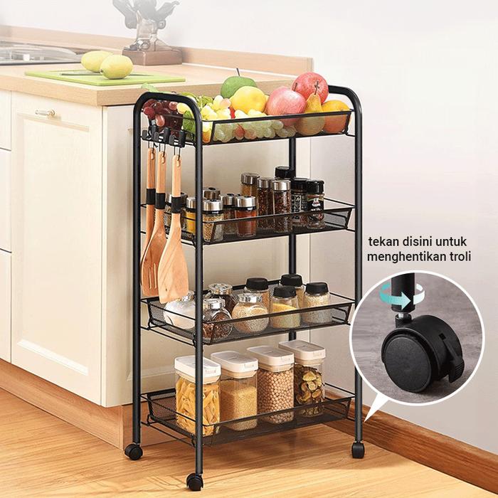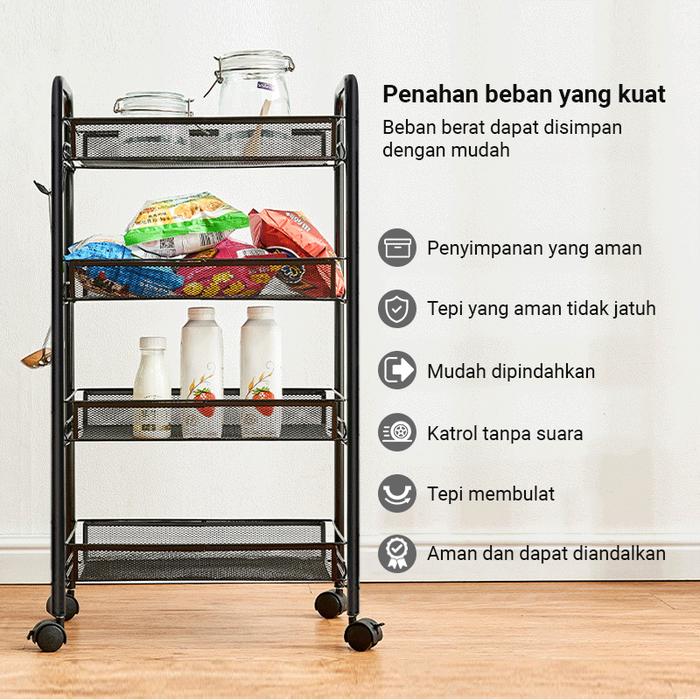 MEHAA RAK SUSUN BESI SERBAGUNA 4 SUSUN DENGAN RODA 360 DERAJAT RAK DAPUR SERBAGUNA FURNITURE - WHITE
