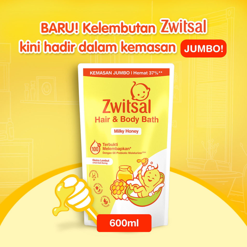 Zwitsal Baby Bath Hair & Body Milky Honey 600 mL Sabun Bayi