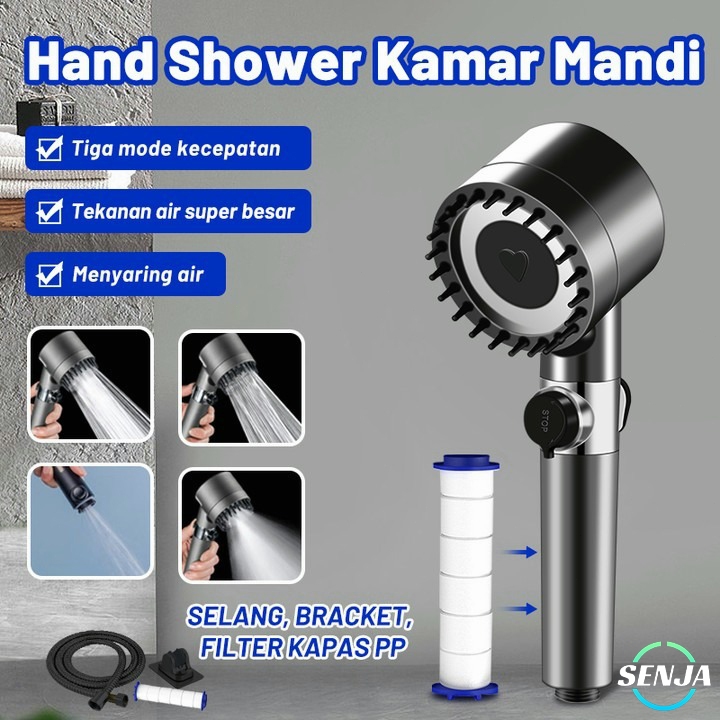 Ready 4 In 1 Paket Handshower Kepala Shower Tekanan Tinggi Dengan Pijat Kepala Saringan 3 Mode Premium