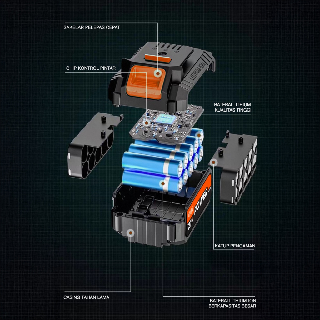 CUTA Baterai Bor Impact Gerinda Lithium Power Tools Battery Cordless Kapastias Tinggi Tahan Lama