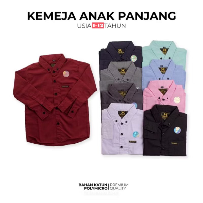 Kemeja Anak Laki Laki Lengan Panjang Polos Umur 1-12 Tahun Import Distro Casual Bayi Cowok