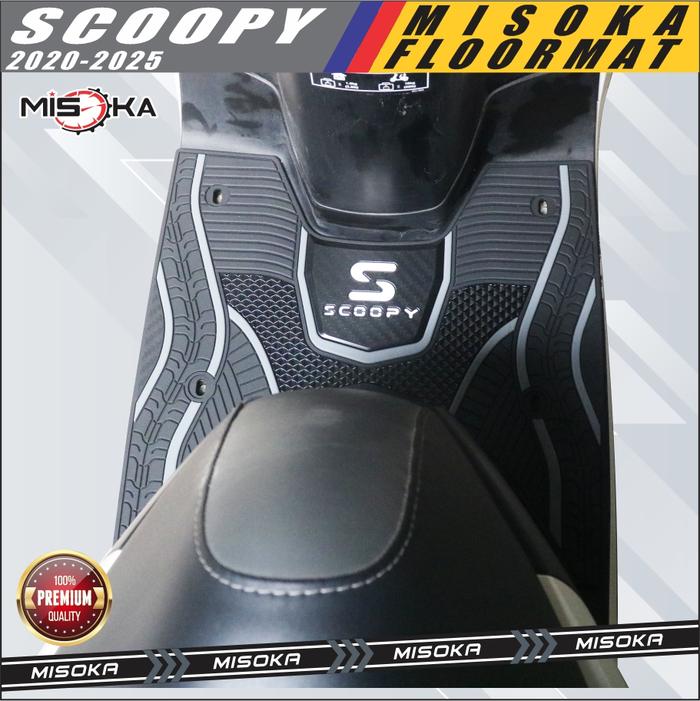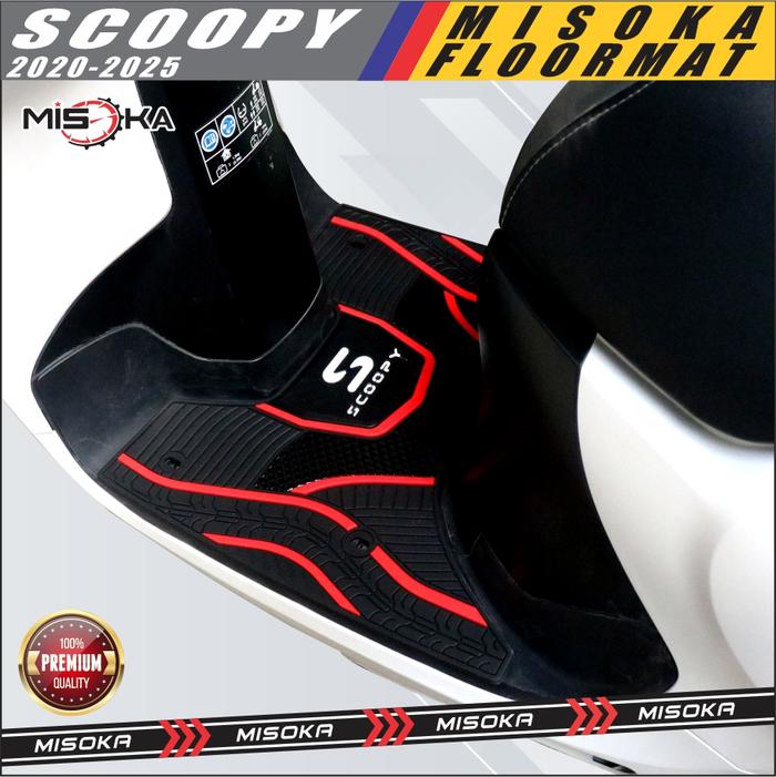 MISOKA FLOORMAT SCOOPY 2020 - 2025 PIJAKAN KAKI AKSESORIS MOTOR HONDA RUBBER KARET - HITAM LIST MERAH