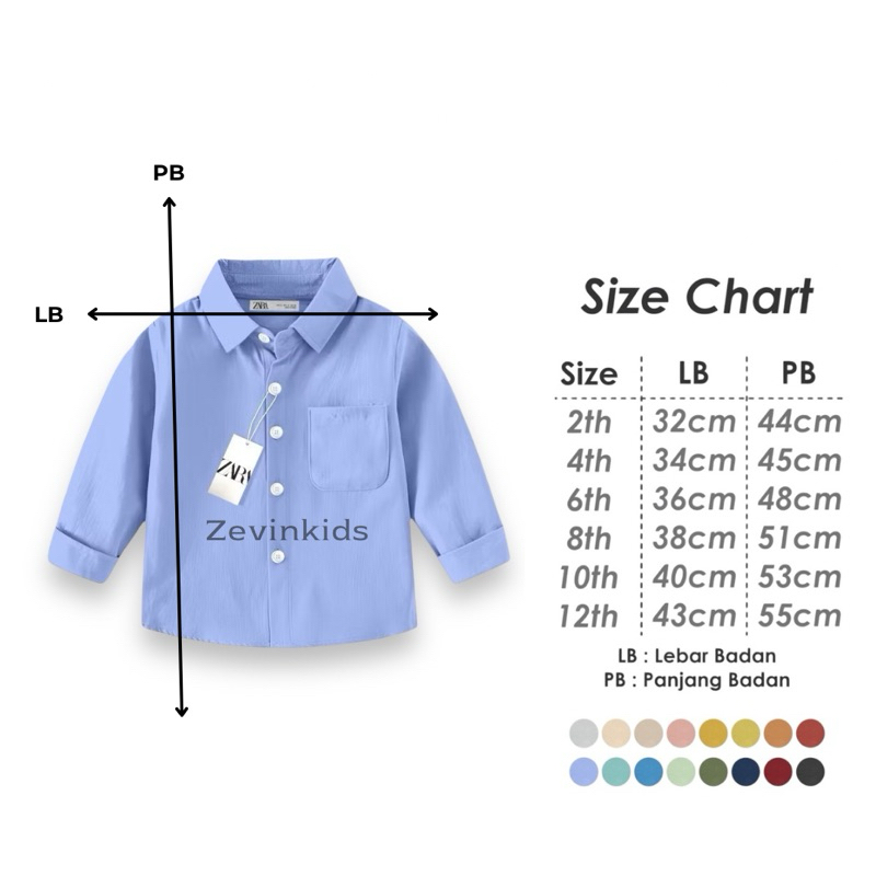 Kemeja Anak Laki Laki premium untuk 1 Tahun sampai 12 Tahun Lengan Panjang