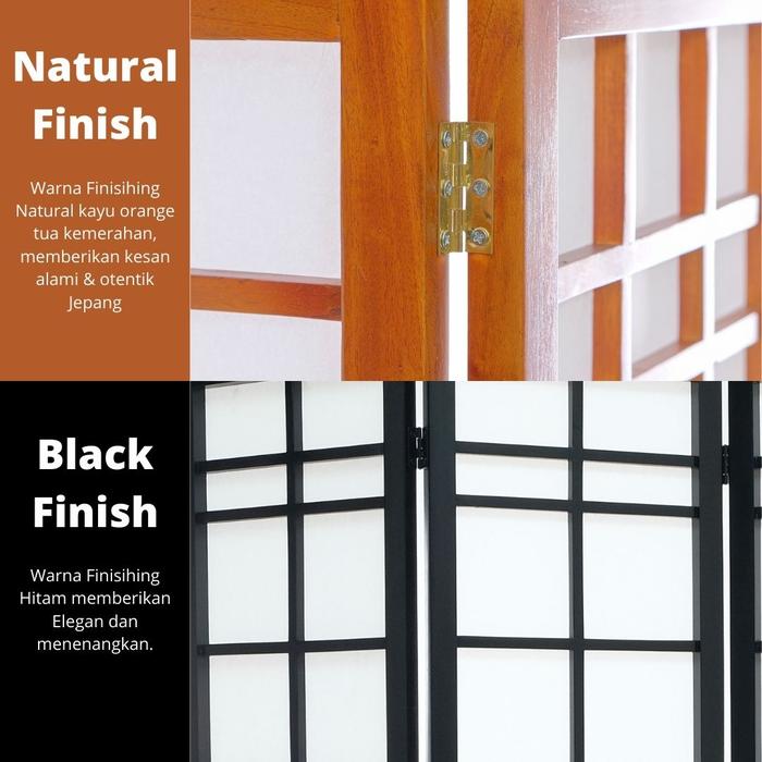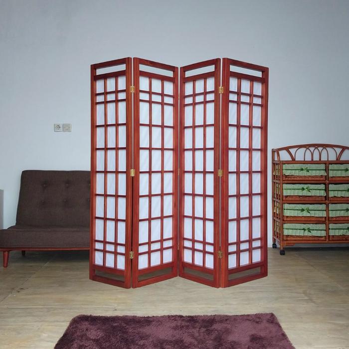 Shoji 160 - 4 Panel Handle Partisi Japanese Pembatas Ruangan Lipat Sekat Sketsel Kayu Furniture Minimalis Room Divider -