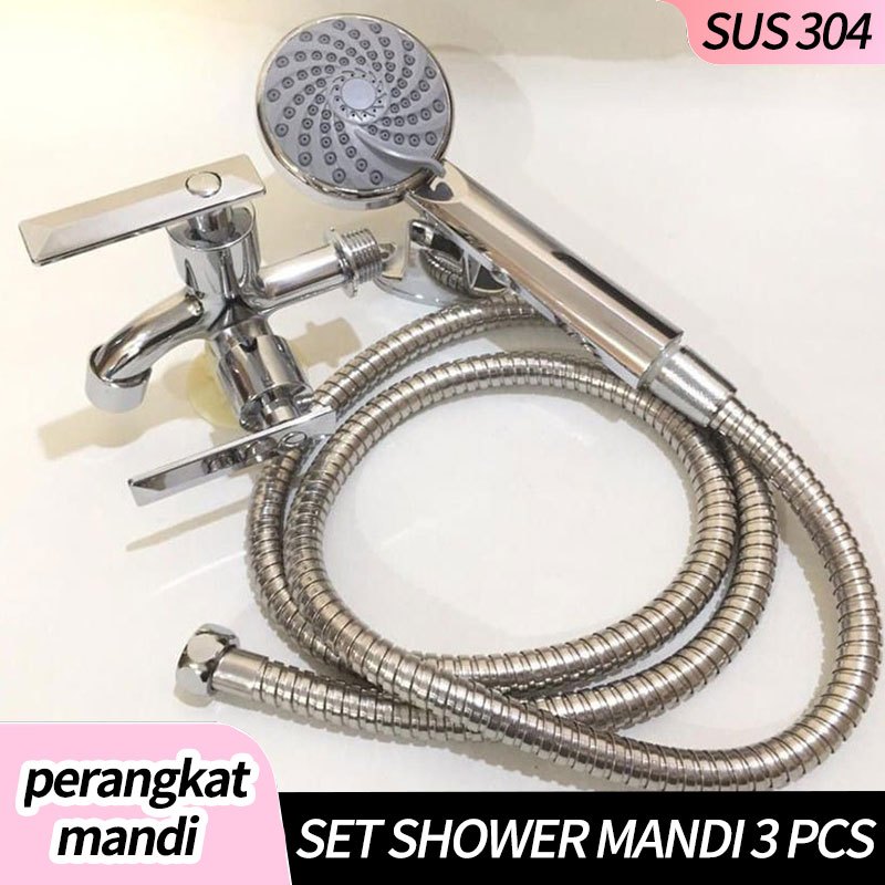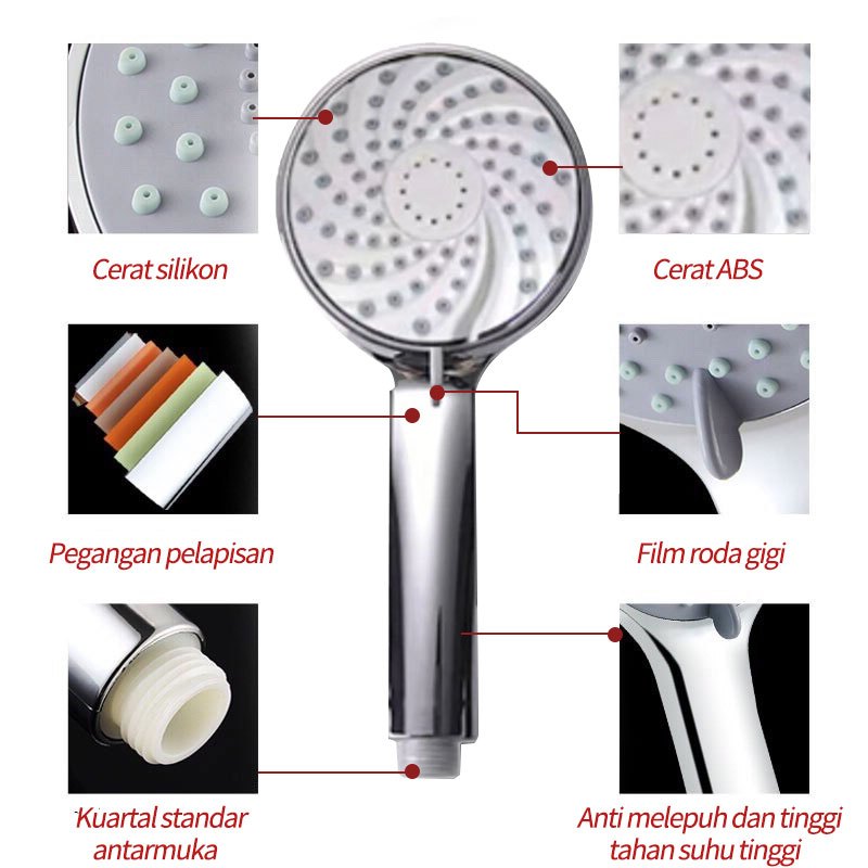 Stainless Hand Kran Shower 5 Mode Fungsi Paket Shower Mandi Shower Standar Komplit Kran 120Cm Dan Braket System