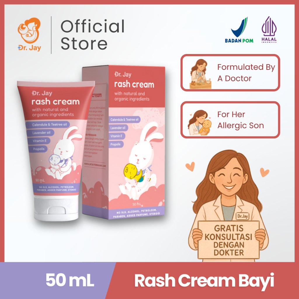 dr. Jay Natural and Organic Rash Cream Pereda Ruam Popok, Iritasi Eczema Bayi