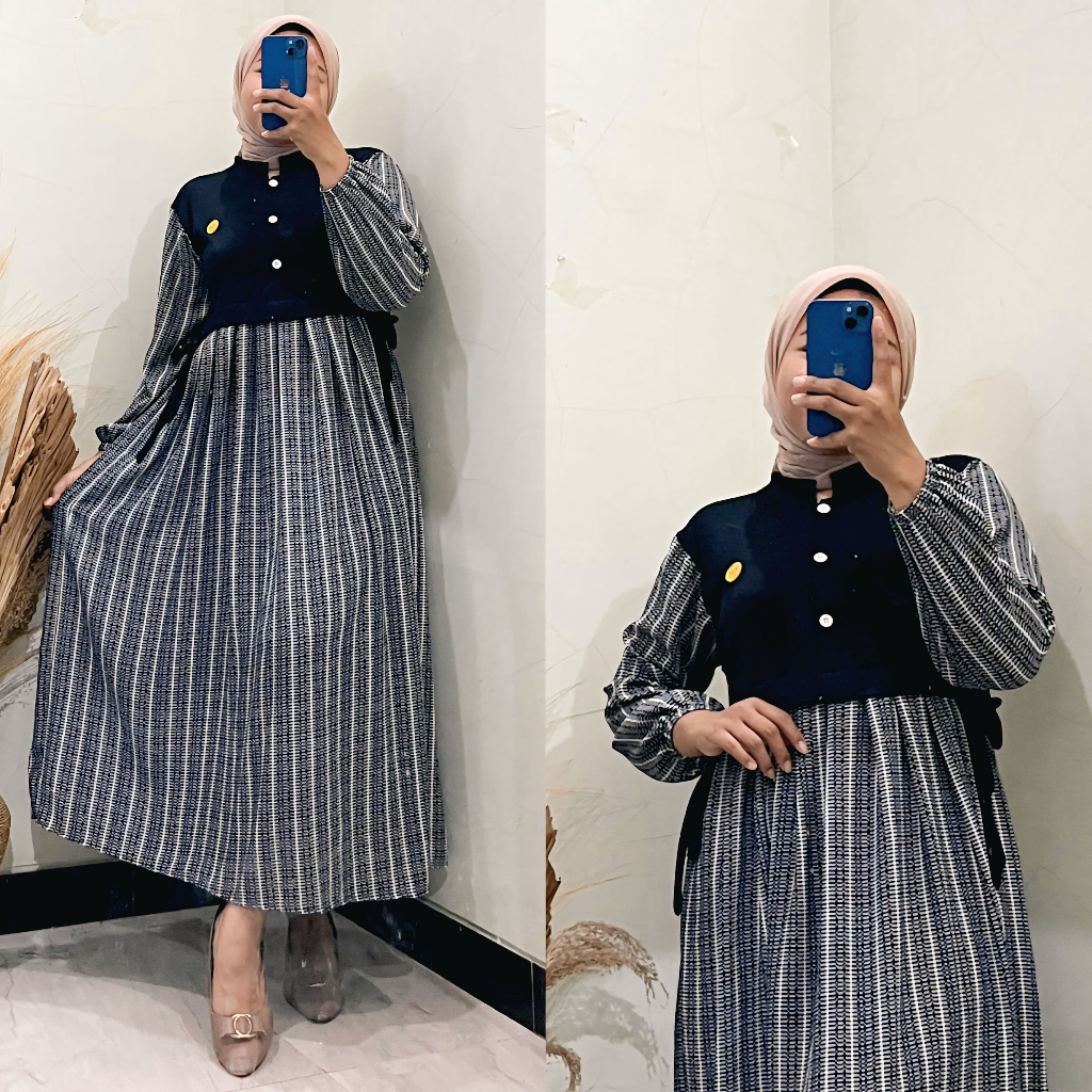 maygrosirid Midi Dress Rompi Knit Monalisa Baju Gamis Wanita Busui Crinkle Aleva Premium Muslim