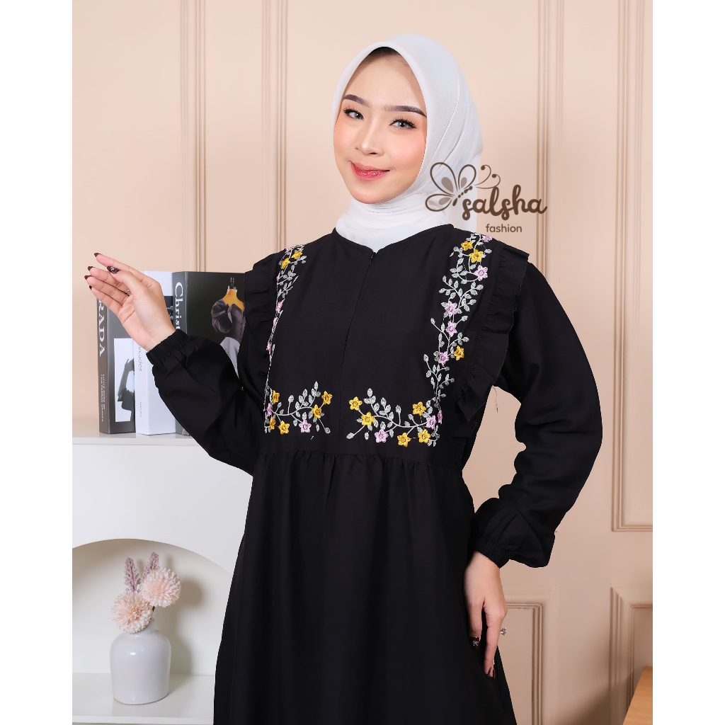 Zora gamis wanita model terbaru/dress kondangan wanita muslim bordir bunga busui freindly