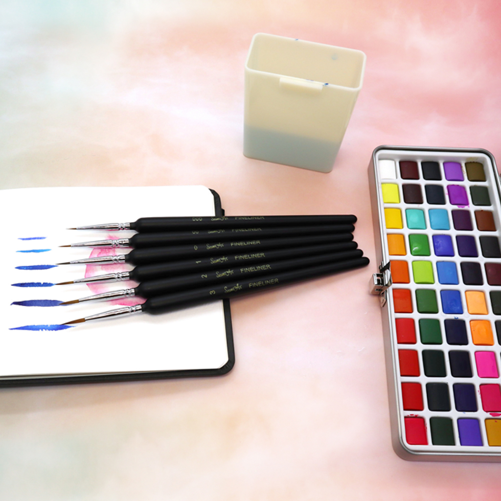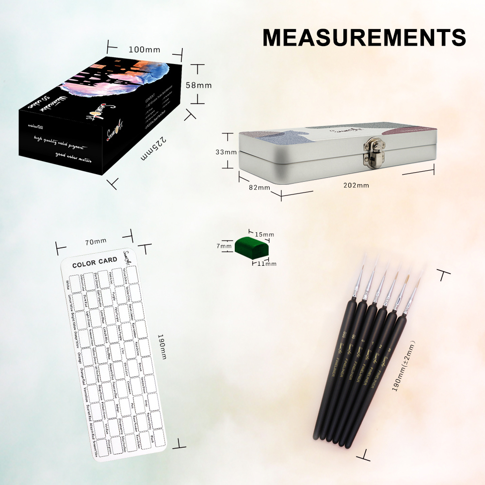 SeamiArt 50color Solid Watercolor Paint Gift Set with 6pcs Paint Brush Cat Air Padat Warna Terang Dengan Kuas Air Otomatis