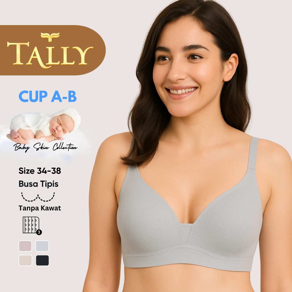 TALLY Sarwendah BH 3115 Bra Tanpa Kawat Busa Tipis Bahan Nilon Seamless Baby Skin CUP A Kait 3 Bra Breatable Pakaian Dalam Wanita Lembut dan Nyaman