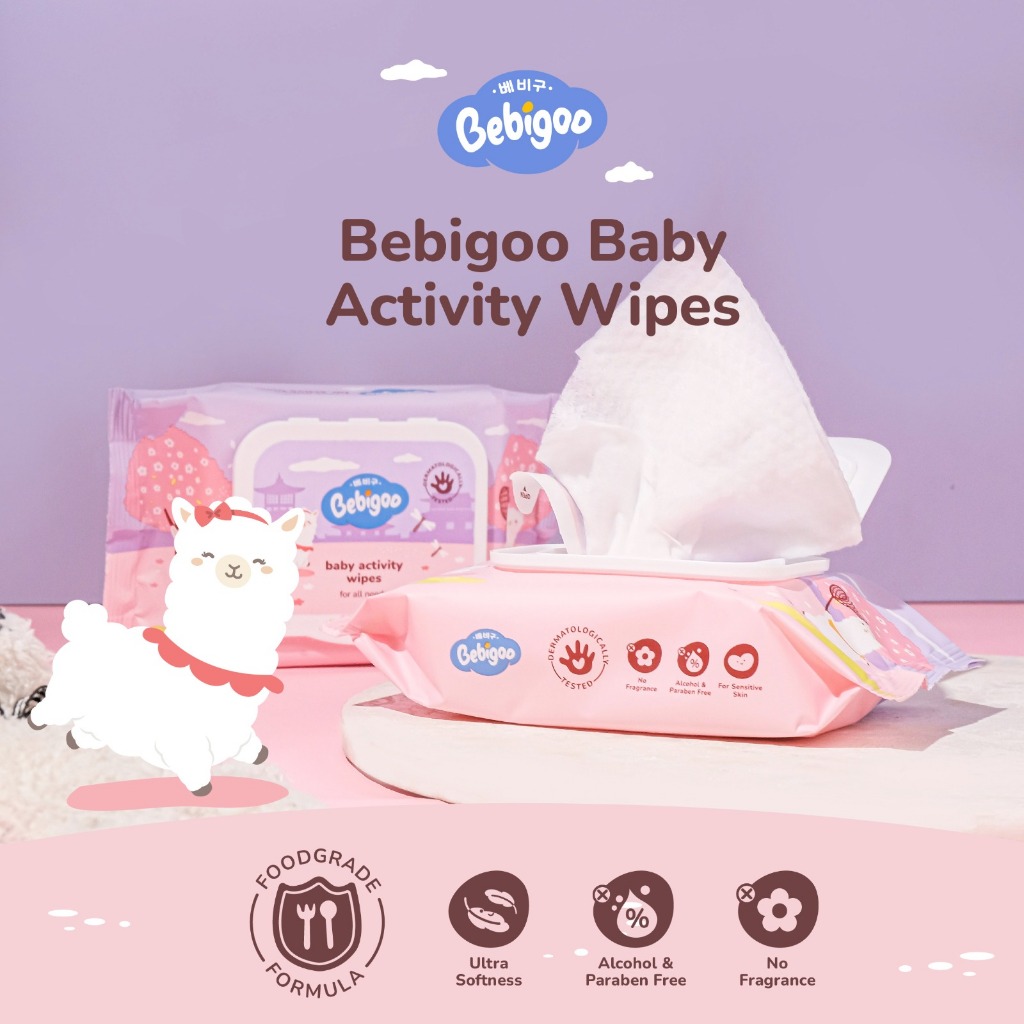 Tisu Basah Bayi Bebigoo Tissue Baby Activity Wipes For All Needs Wet Wipes 8x8 Sheet Antibakterial Tanpa Alkohol & Pewangi