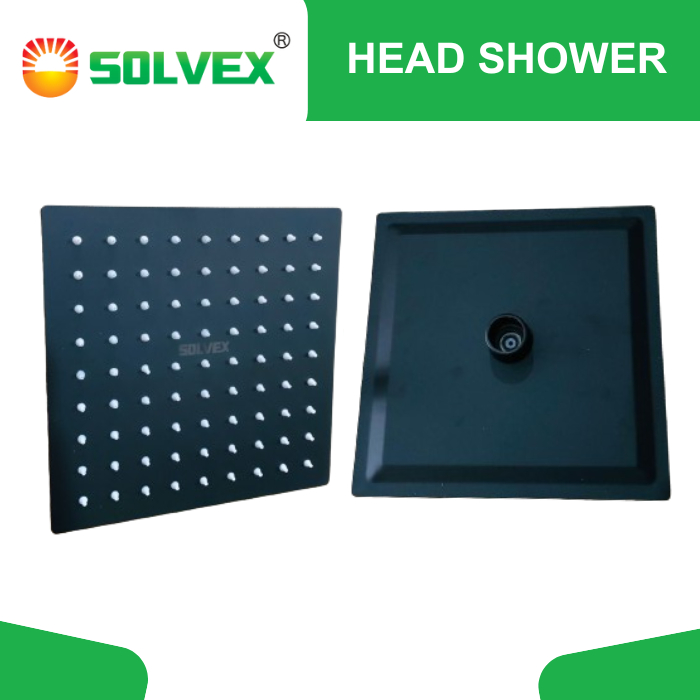 Solvex Kepala Shower Stainless Hitam Head Wall Shower Kotak 8-12 Inch