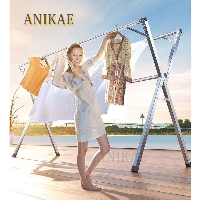 Sus 304 Jemuran Baju Lipat Stainless Steel /Gantungan Baju/160-240Cm Tempat Jemuran Baju Jemuran Hanger Portable