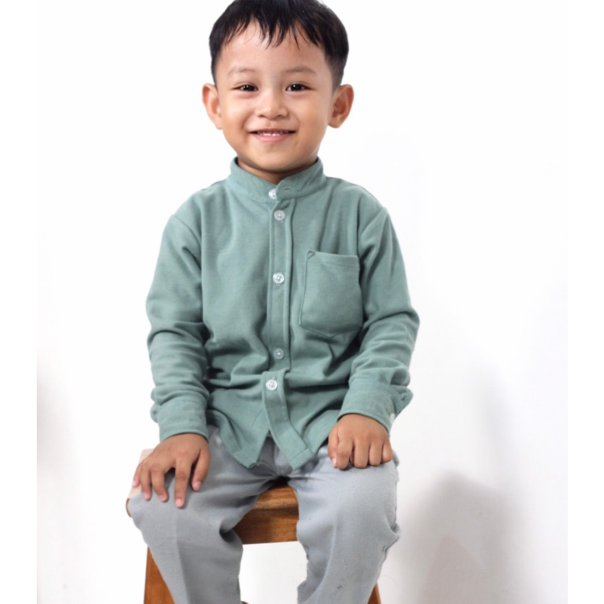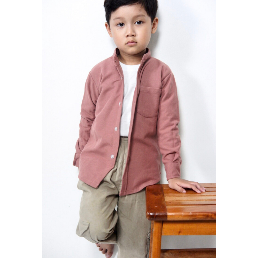 Kemeja Anak Cowok Usia 1-12 Tahun Polos Kerah Chiangi Lengan Panjang