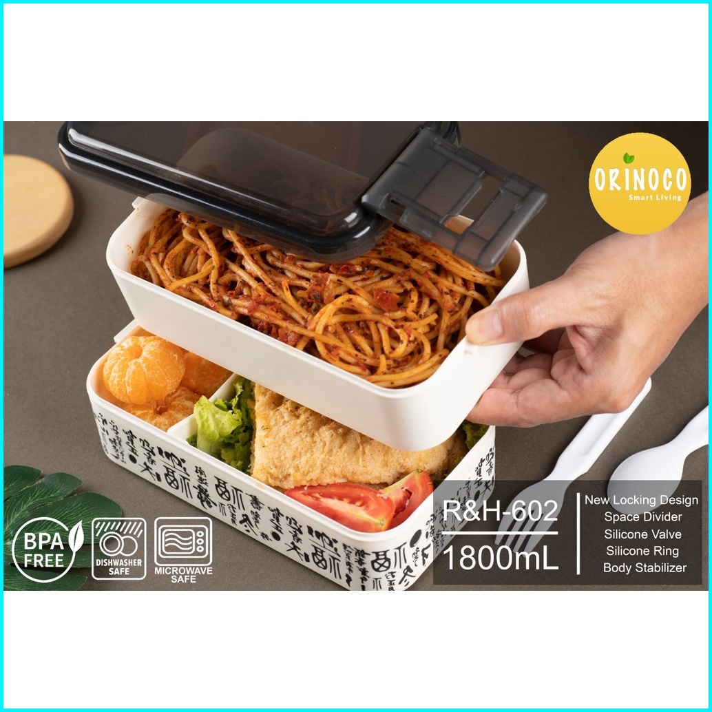 Orinoco Lunchbox Rh-602 New Design With Japanese Printing 2 Layers Include Sendok Garpu Rh-602