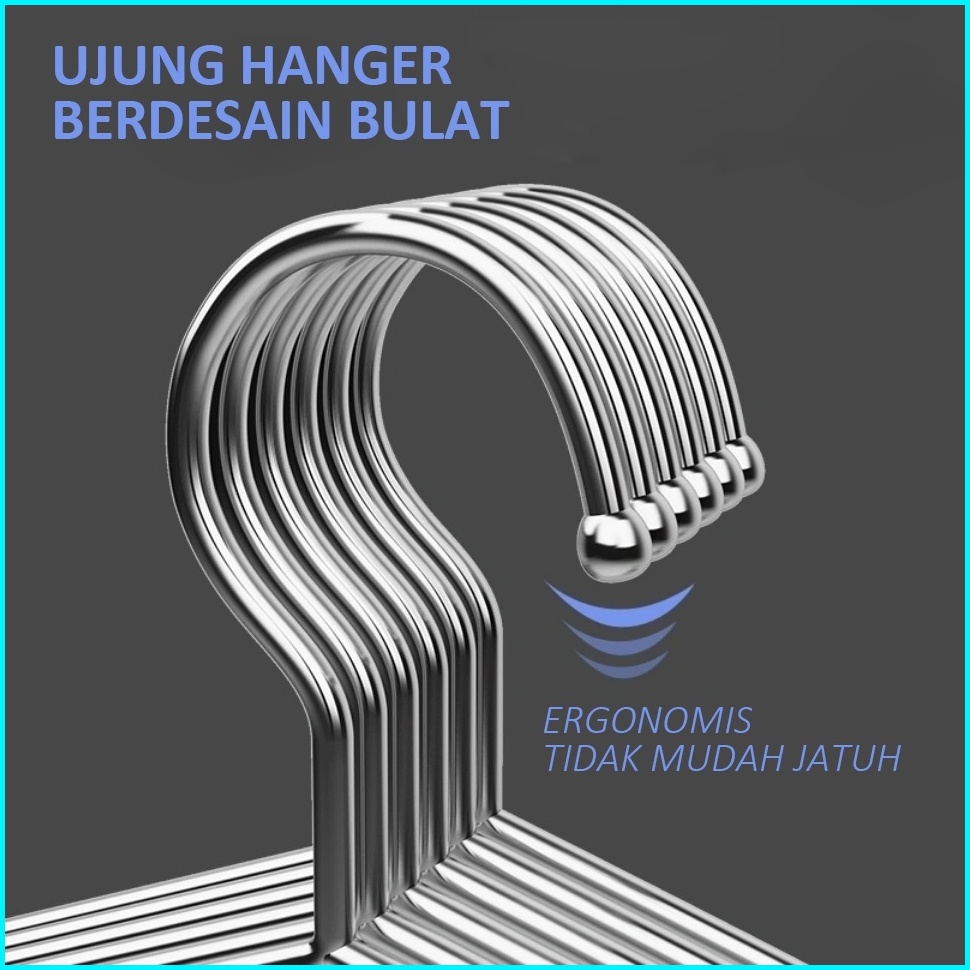 Ceo Hanger Baju Stainless Steel Gantungan Baju Anak Dewasa Premium Tebal Kuat Set Isi 10pcs