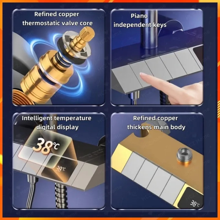 Szth Sxb03 Shower Kamar Mandi Satu Set One Bathroom Shower Set Mewah Shower Piano Dengan Display Suhu Led Tenaga Hidro