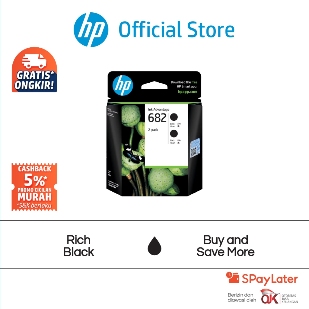 Tinta Printer HP Original 682 Hitam Black / Twin Pack / Combo 2 Pack / Cartridge Asli Tri Color / Colour / Warna / Murah Gratis Ongkir Official