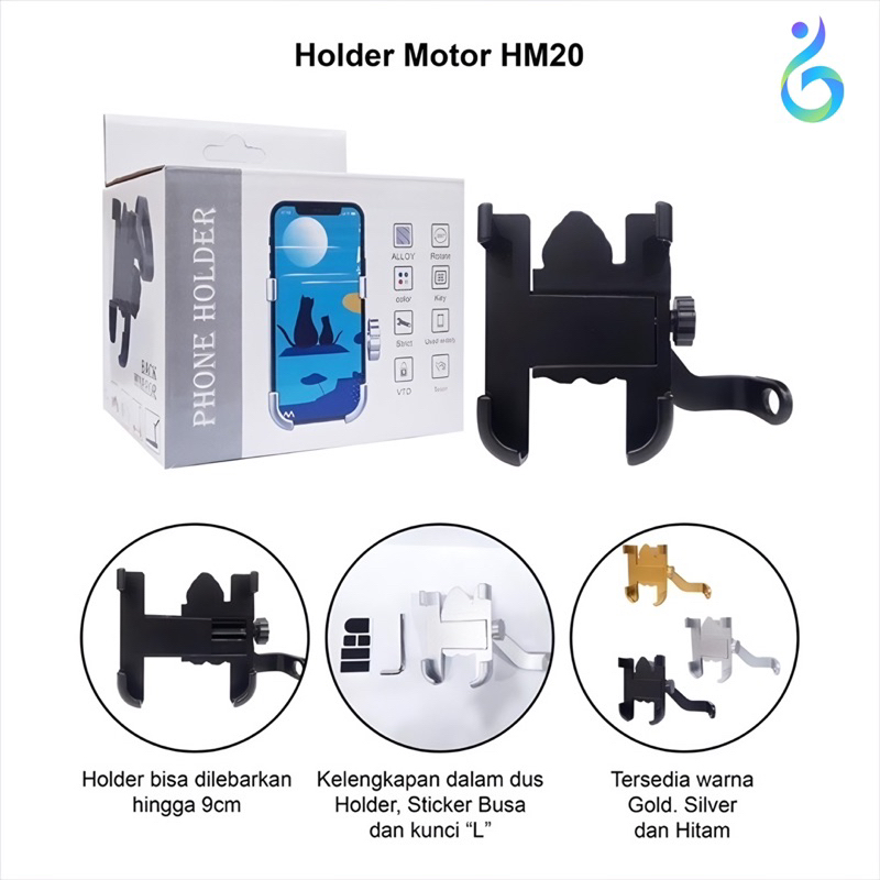 HM20 Holder hp spion FULL BESI penahan ponsel penyangga pencagak pegangan stand handphone di motor original kuat aman anti slip