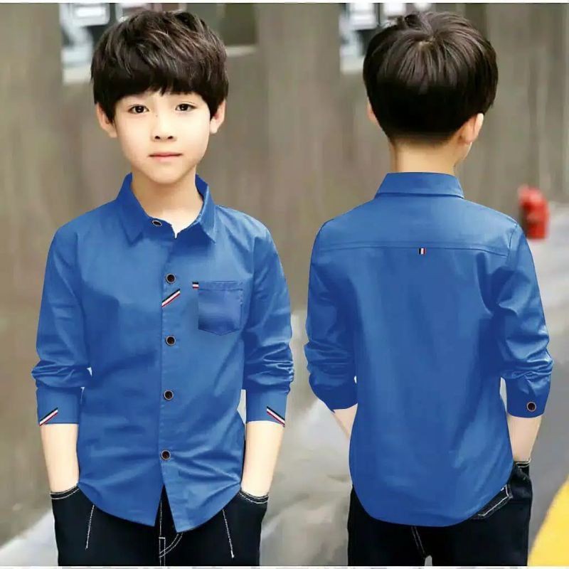 Kemeja anak laki-laki Lengan Panjang bahan katun stretch (3th-12th)