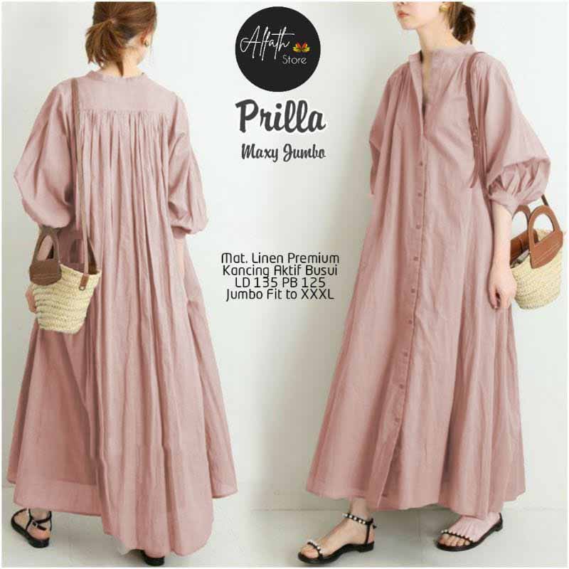 GrosirBajuBandung17 TERBARU Gamis Prilia Maxy Dress Bahan Polo Linen Model Elegan Simple Baju Dress Lebaran Termurah
