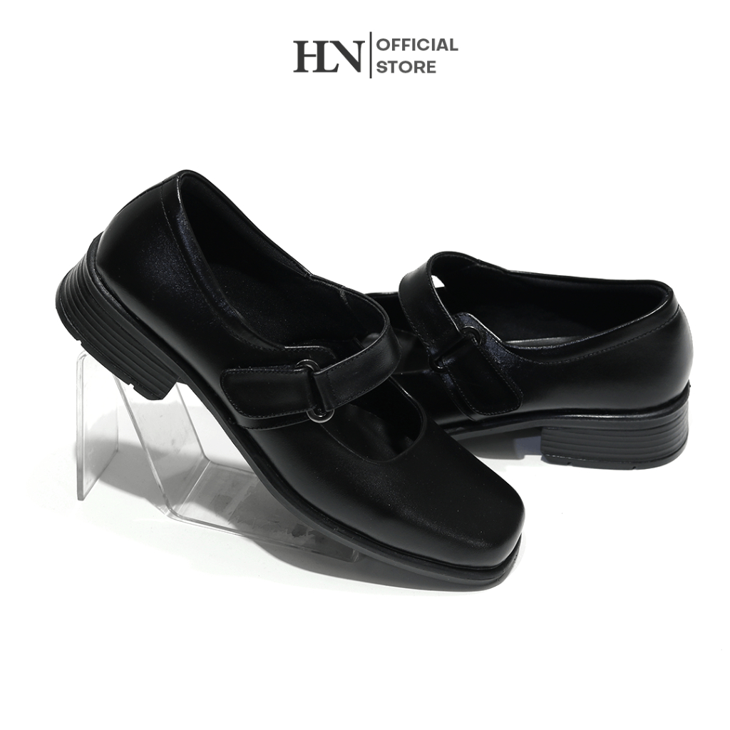 HLN Sepatu Pantofel Paskibra Wanita Tali Perekat Bahan Kulit Sapi Asli Tinggi 3cm Ukuran 36-43