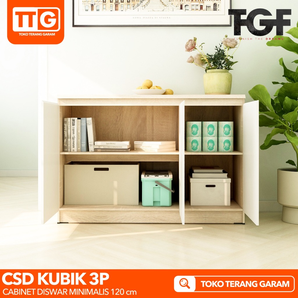 Tgf Cabinet / Diswar / Lemari Rak / Bufet 3 Pintu Serbaguna Minimalis Csd Kubik 3P 120 Cm