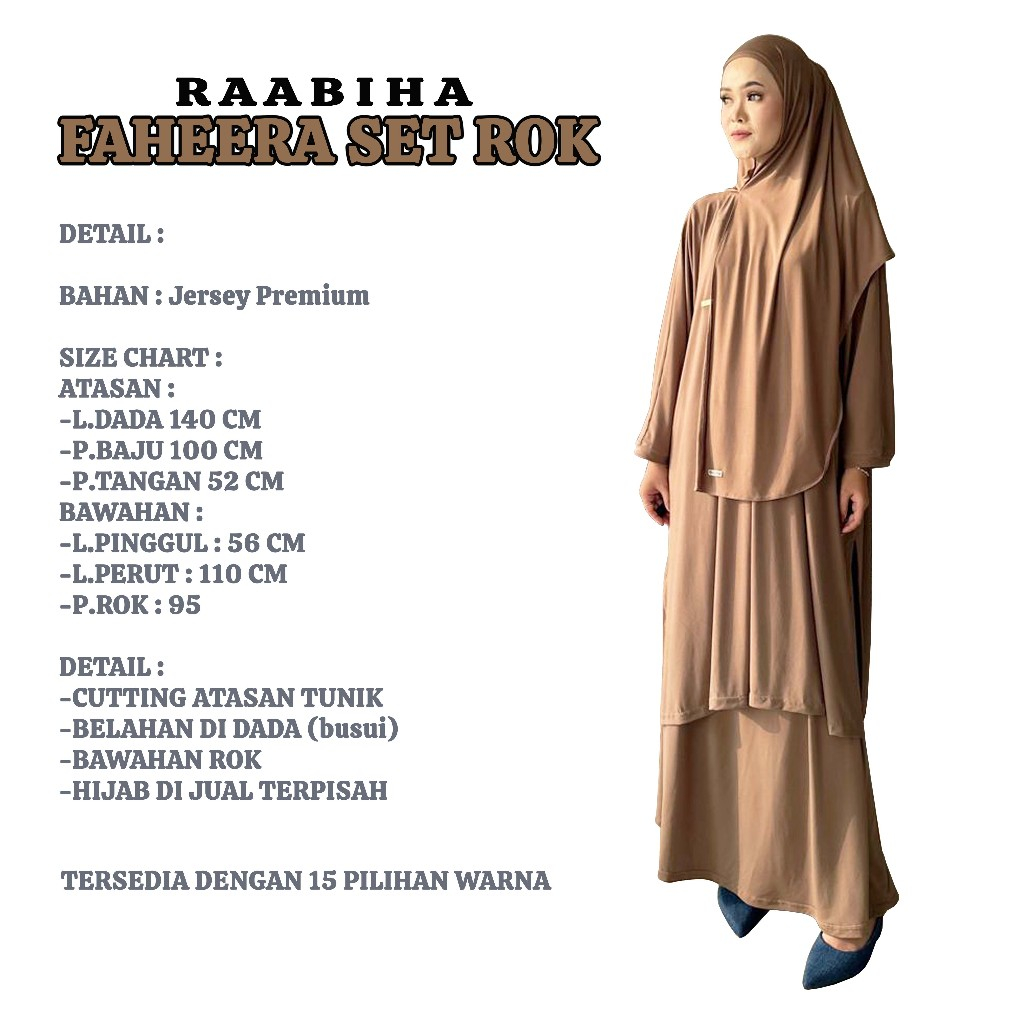 RAABIHA Faheera Set Rok Jersey Premium Tanpa Hijab Oneset Rok Muslimah Syar'i Remaja Setelan Set Basic Wudhu Friendly Adem