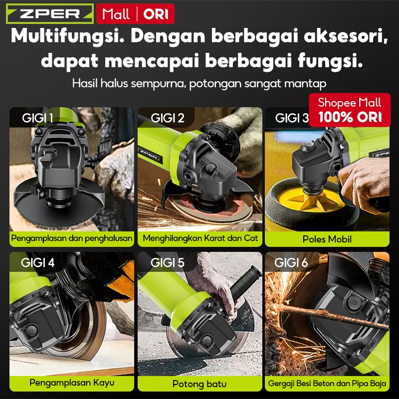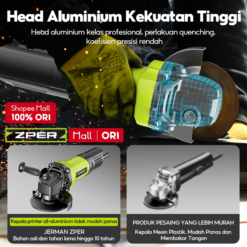 ZPER Mesin Gerinda Angle Grinder Tangan Listrik Penggiling Sudut Portable Multifungsi Untuk Potong