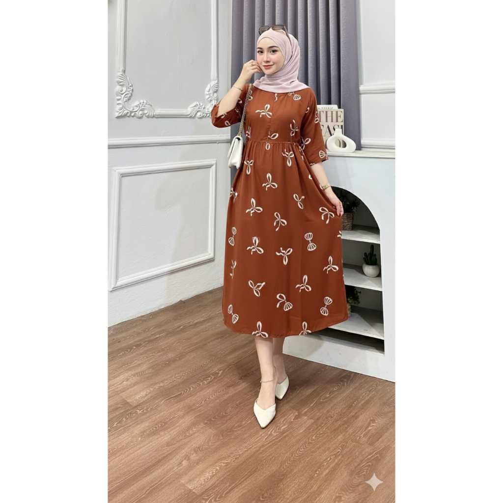 Rill Miranda Dress Rayon34 Daster Rayon Premium Motif Bunga Midi Dress Busui