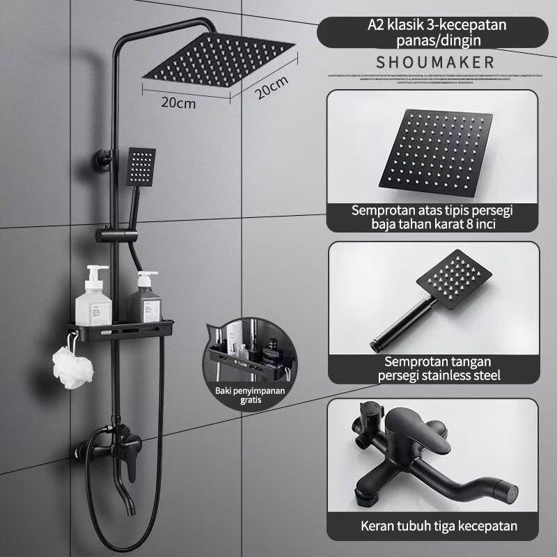 Sus 304 Shower Set Shower Kamar Mandi Rain Shower Perak Dengan Shower Stainless Steel Dan Shower Caddy