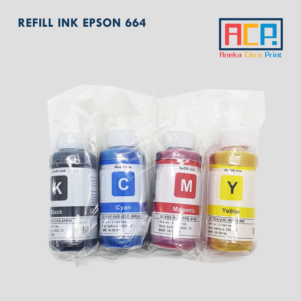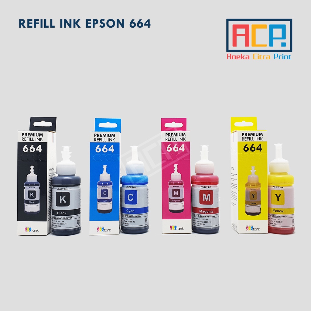 ACP Premium Refill Ink 664 - Tinta Dye L100 L120 L121 L200 L210 L300 L355 L360 L455 L565