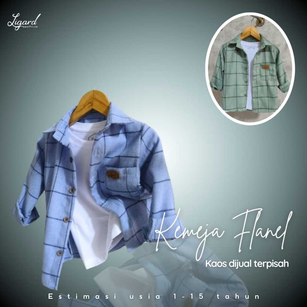 Ligard kemeja anak laki-laki dan perempuan bahan flanel kotak-kotak usia 1-15 tahun