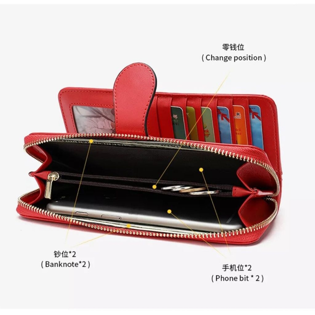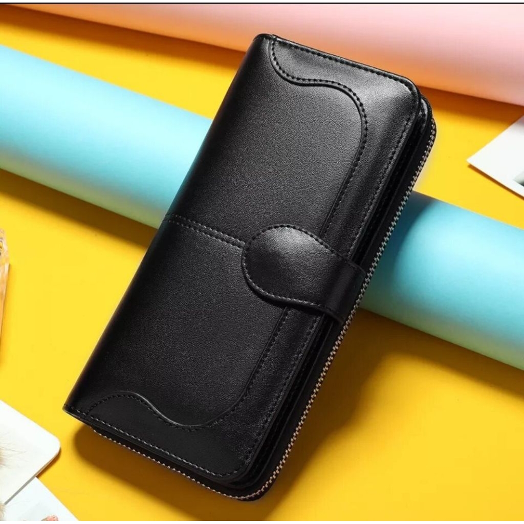 DOMPET WANITA PANJANG BAHAN KULIT SINTETIS PREMIUM DOMPET RITSLETING WANITA DOMPET COIN KARTU UANG HP FASHION WALLET MULTIFUNGSI