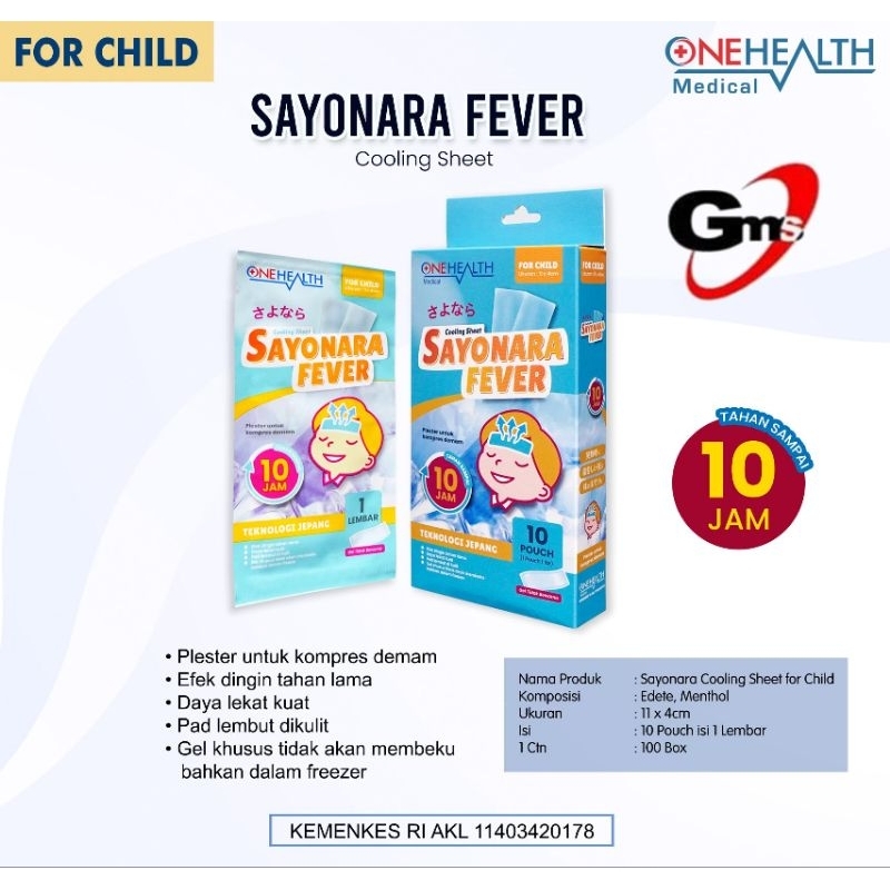 Onehealth Sayonara Fever Anak Box isi 10 Pcs Plester Kompres untuk Demam Seperti Bye Bye Fever