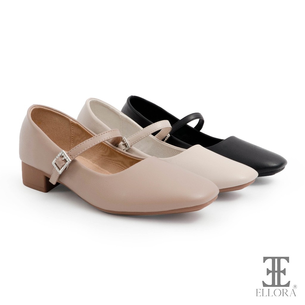 ELLORA EY-3411 Sepatu Wanita Hak Chunky Heels 3cm Mary Jane Import