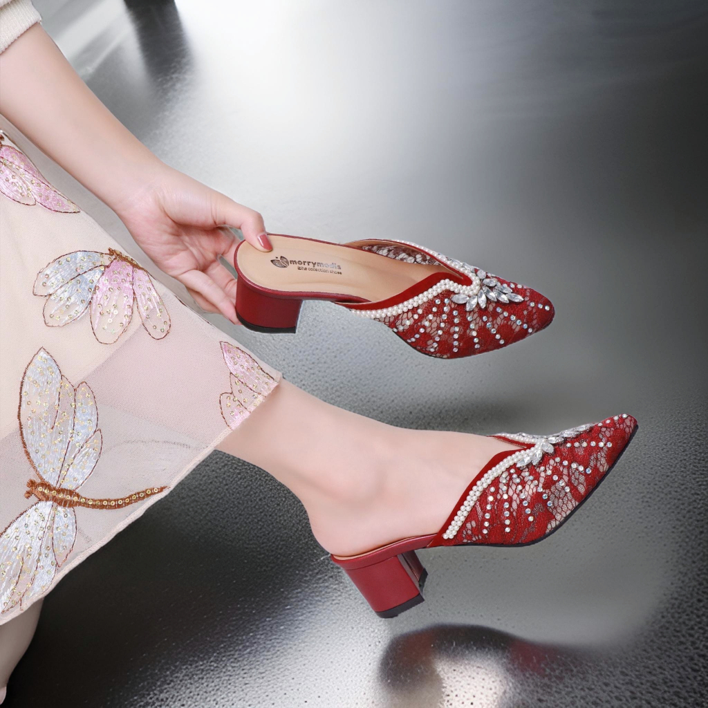 Herdian RTWO 34 Sandal Heels Wanita Pesta Kondangan Hak Tahu 5 cm Anti Slip Mules