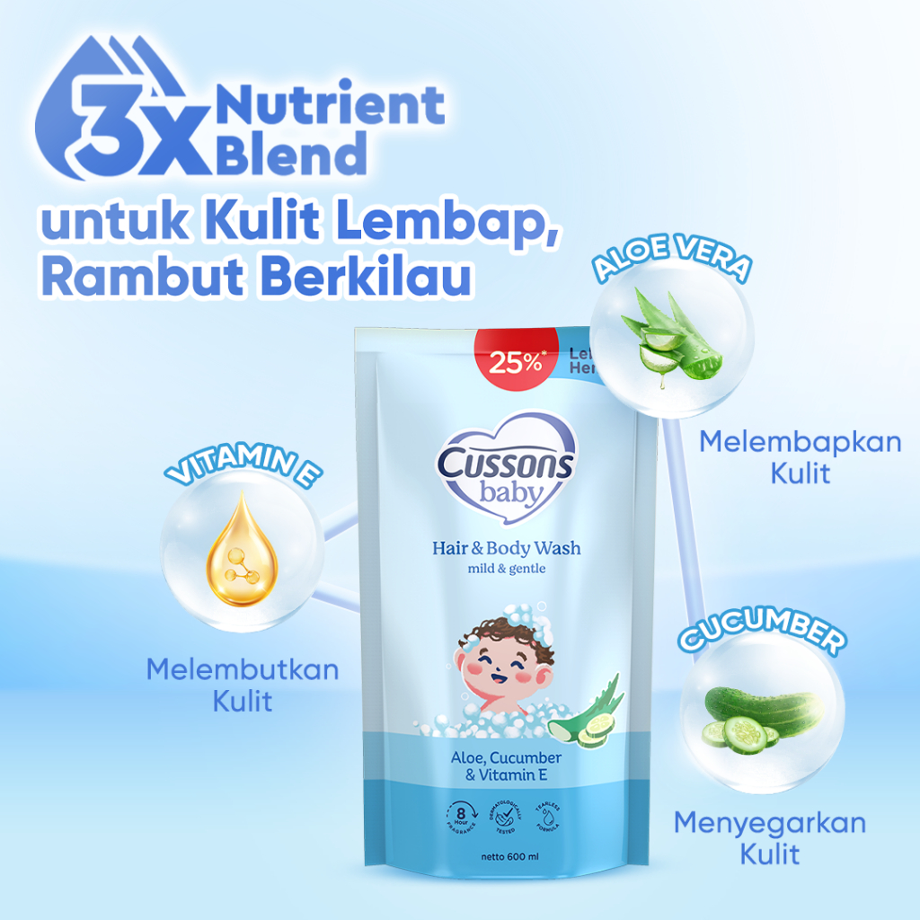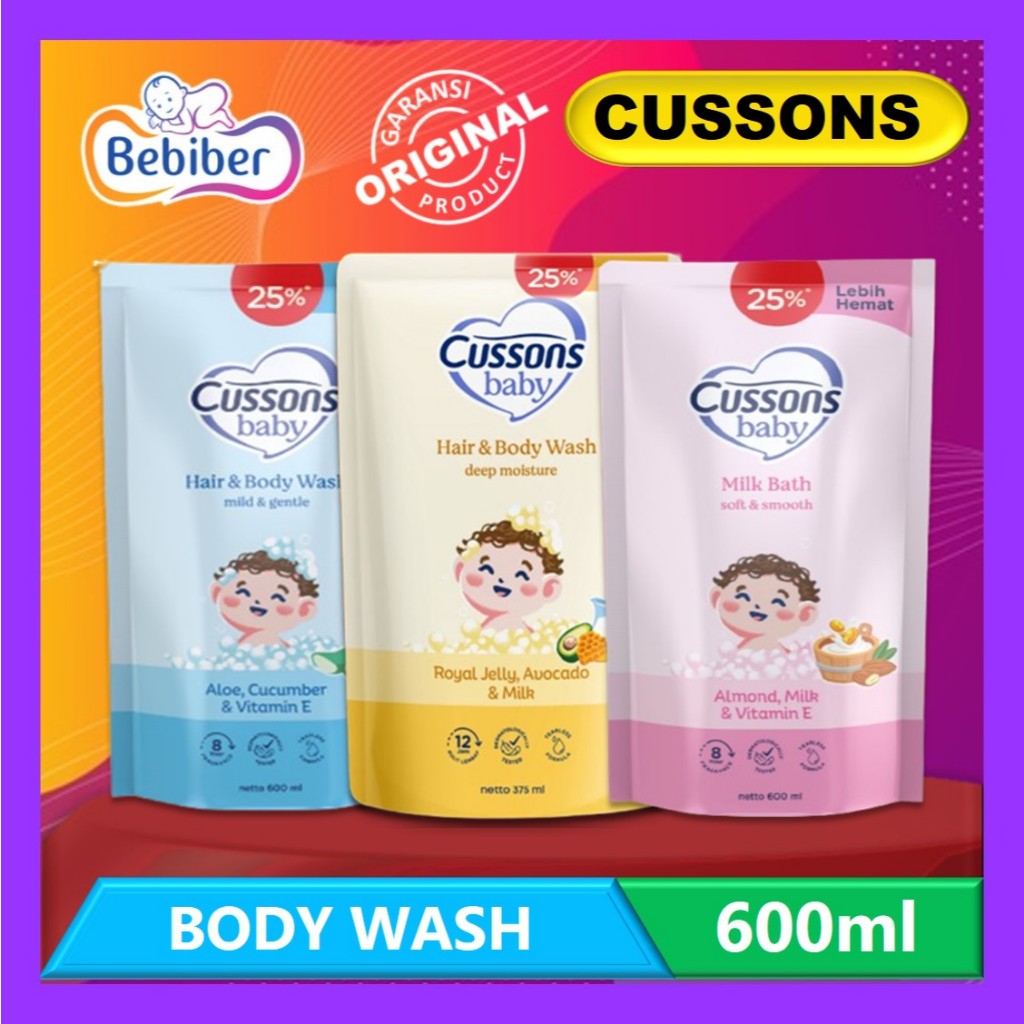 Cussons Baby Hair & Body Wash Mild & Gentle 600ml+150ml Milk Bath Sabun Mandi Bayi Bebiber