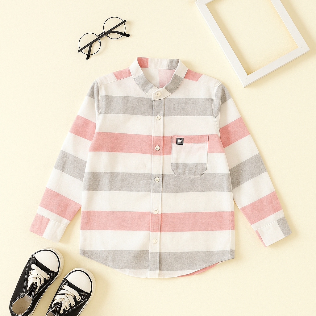 Kemeja Flanel Anak Motif Stripes Salur Umur 2-10 Tahun Trand 2026 Lengan Panjang