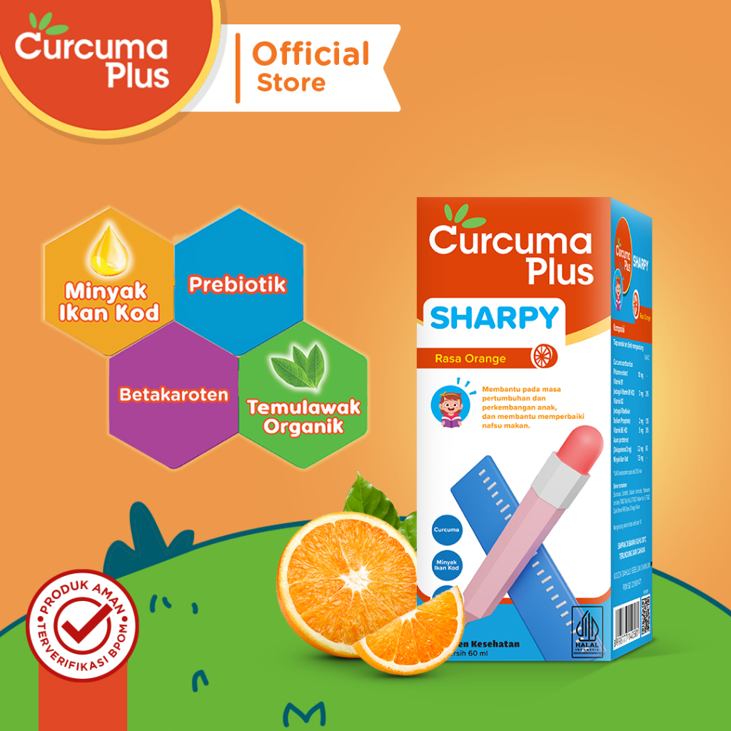 Curcuma Plus Sharpy Sirup Vitamin Mendukung Perkembangan Otak & Menjaga Kesehatan Pencernaan Anak Rasa Jeruk 60 ml