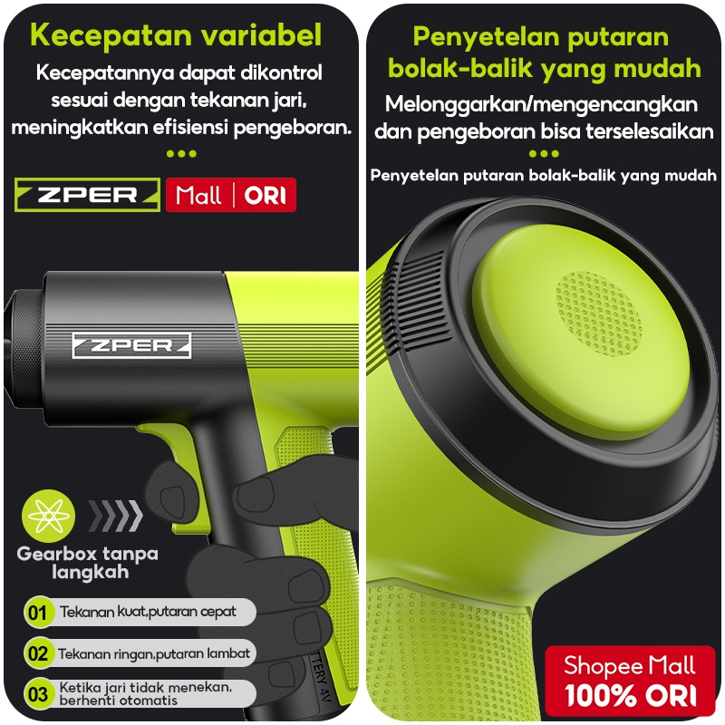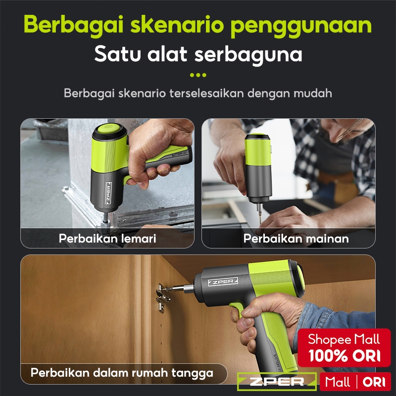 ZPER Obeng Set Lengkap Toolkit Tool Box Mesin Bor Listrik Baterai Obeng Elektrik Set Komplit Mini Cordless Portable