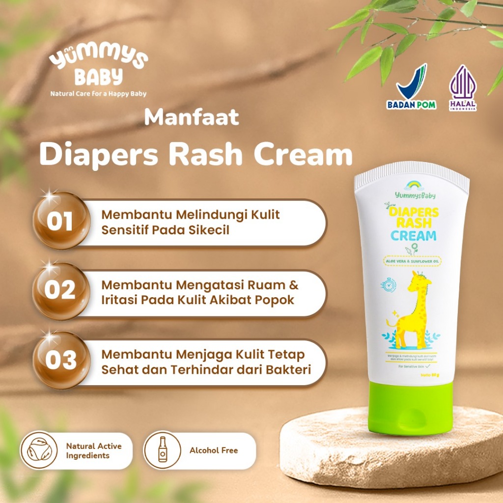 YummysBaby Diaper Rash Cream Baby Perawatan Kulit Bayi Sensitif untuk Ruam & Iritasi