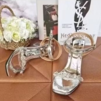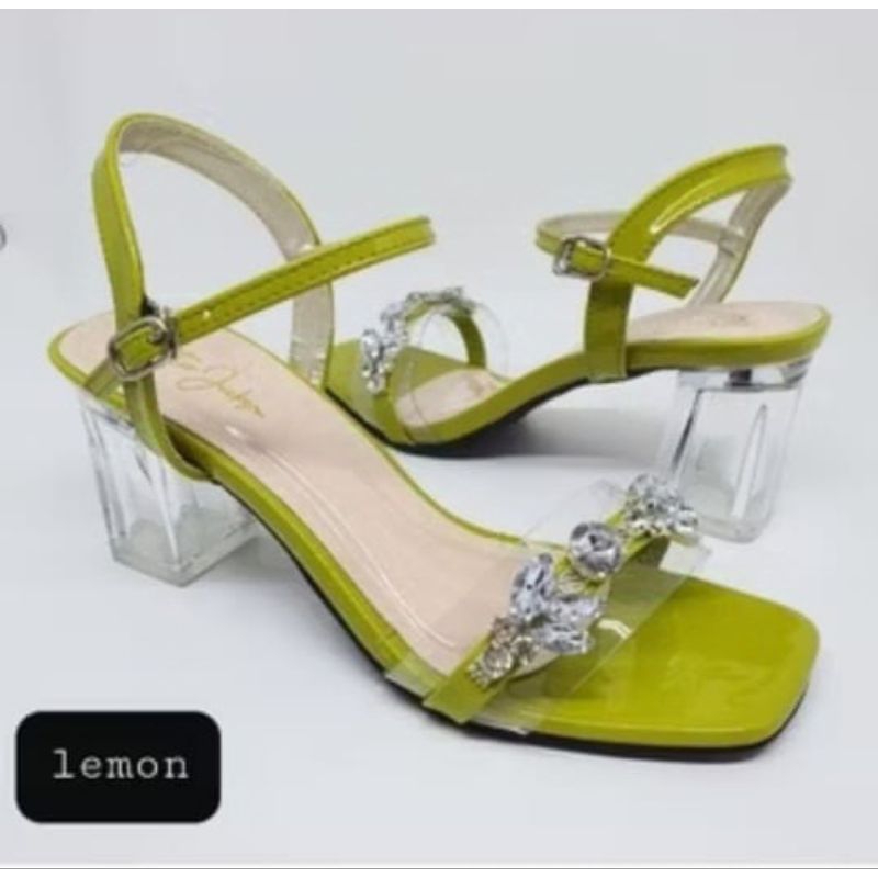 Sendal Sepatu Wanita Tipe Hak Kaca Tinggi 7Cm Model Pormal 002 Transpran Cantik Yaman Buat kondangan