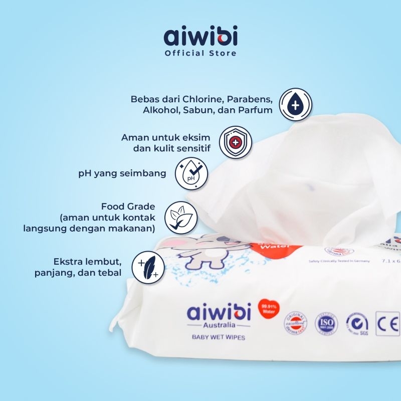 Aiwibi Premium 99,91 PERSEN Water Wet Wipes 80 Lembar Tissue Tisu Basah Bayi Baby