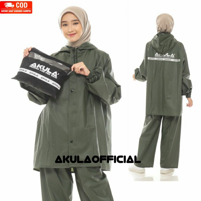 JAS HUJAN, RAINCOAT Pria Wanita Terbaik By AKULA Anti Rembes HIJAU ARMY