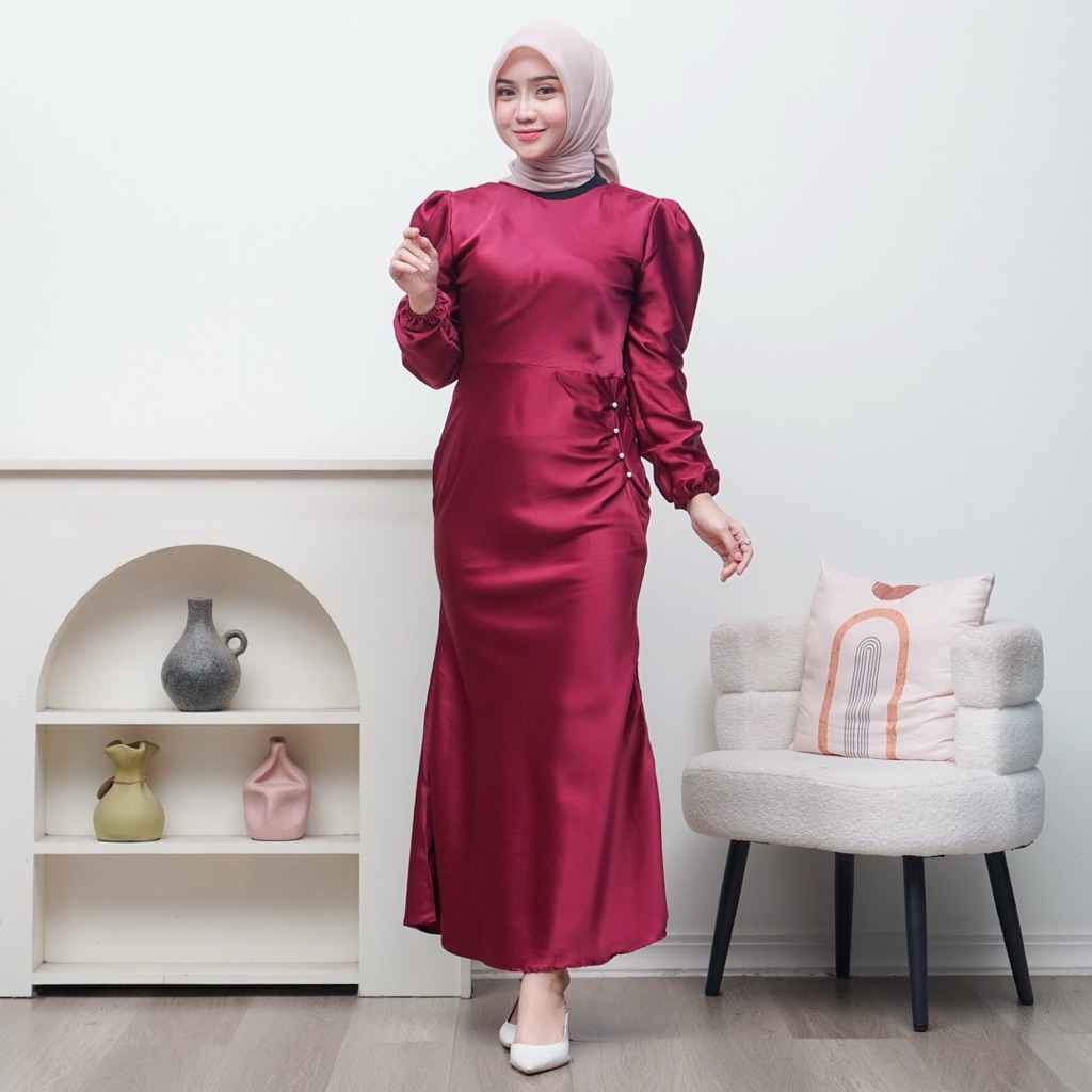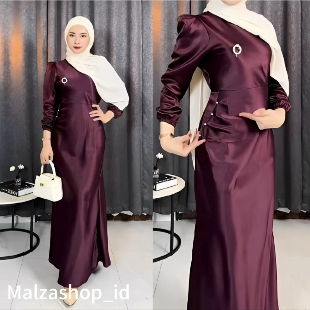 Elora Dress Satin Silk Premium Baju Fashion Wanita Kondangan Wisuda Couple Muslimah Gamis Lebaran Bridesmaid