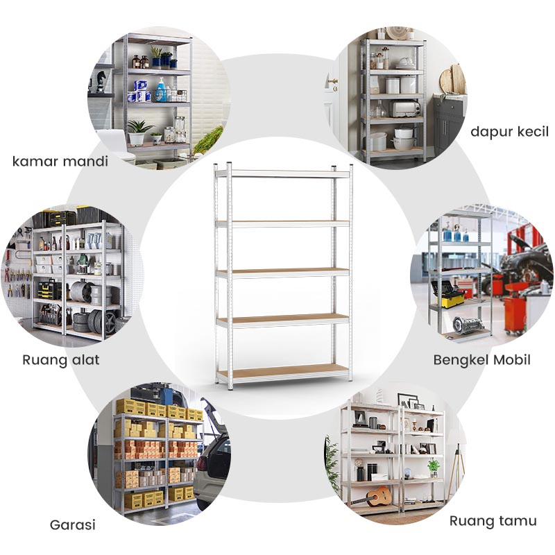 Rak Besi Siku 5 Susun Rak Gudang Kapasitas Beban Tinggi Rak Penyimpanan Hemat Ruang Mudah Dipasang