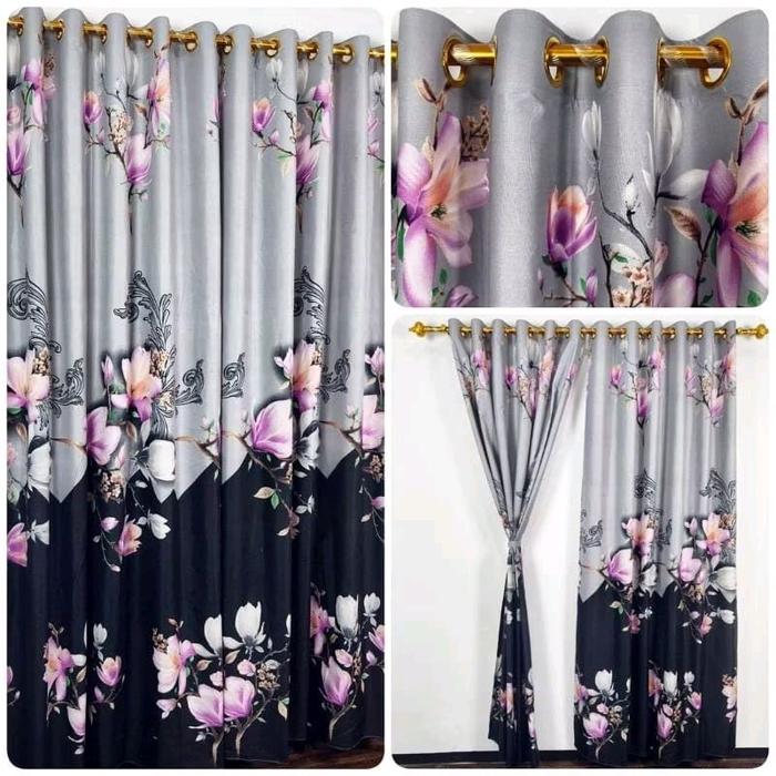 Paket Hemat 1 Dan 4 Lembar Gorden Smokring 10 Lobang L 110 X T 220 Katun Kain - Mavin, 4Pcs(110 X 220)