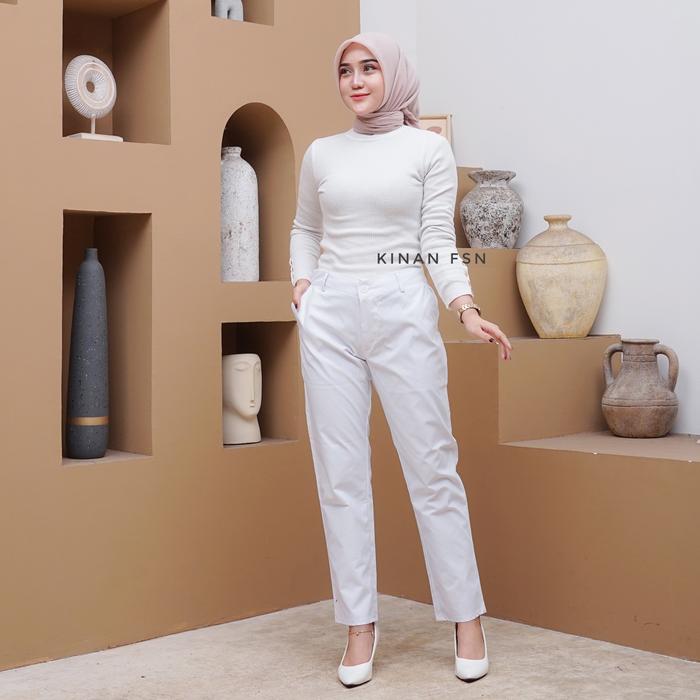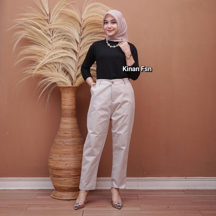 Celana Panjang Wanita Resleting Jumbo Kerja Karet Katun - Hitam, L