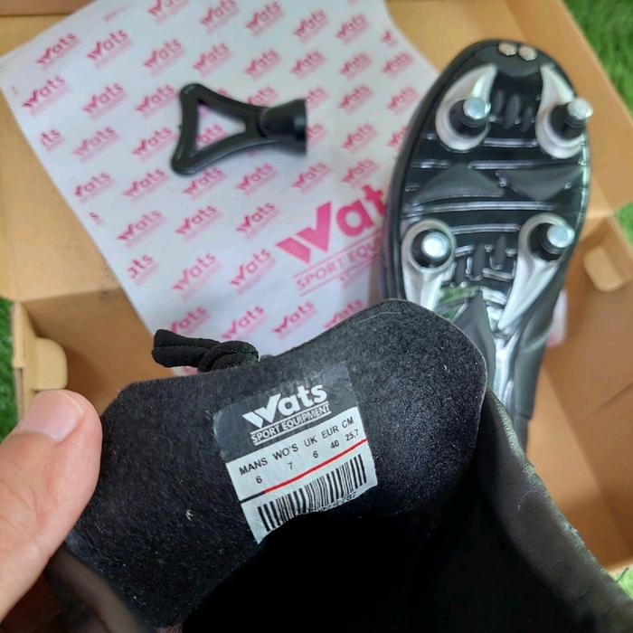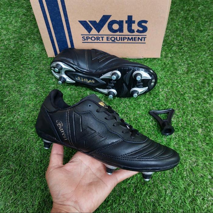 Sepatu Bola Pull Besi Wats Baresi Free Kaos Kaki - Hitam Black Series, 39